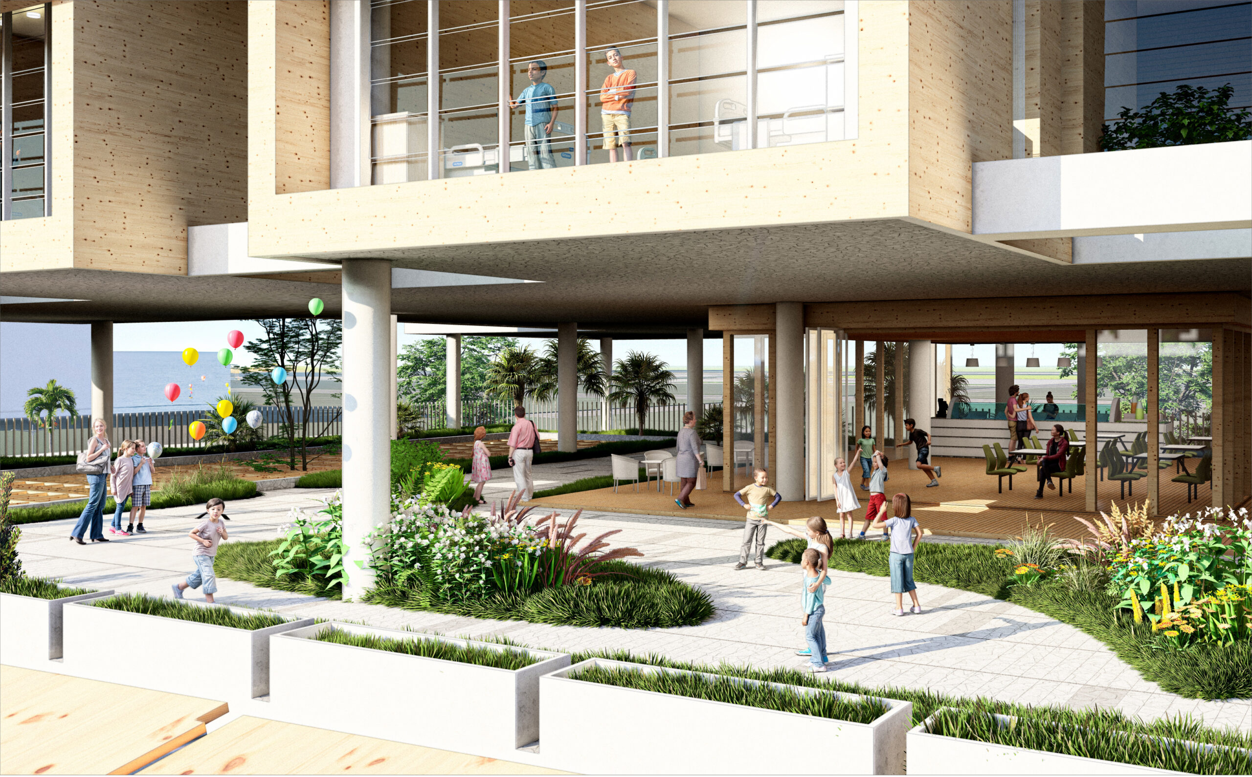 Microclimate Garden: A central courtyard-centered atmospheric space allows for natural ventilation in public spaces. It is a nature-friendly recreational space for pediatric patients and a healing garden that calms the mind and body of visitors.