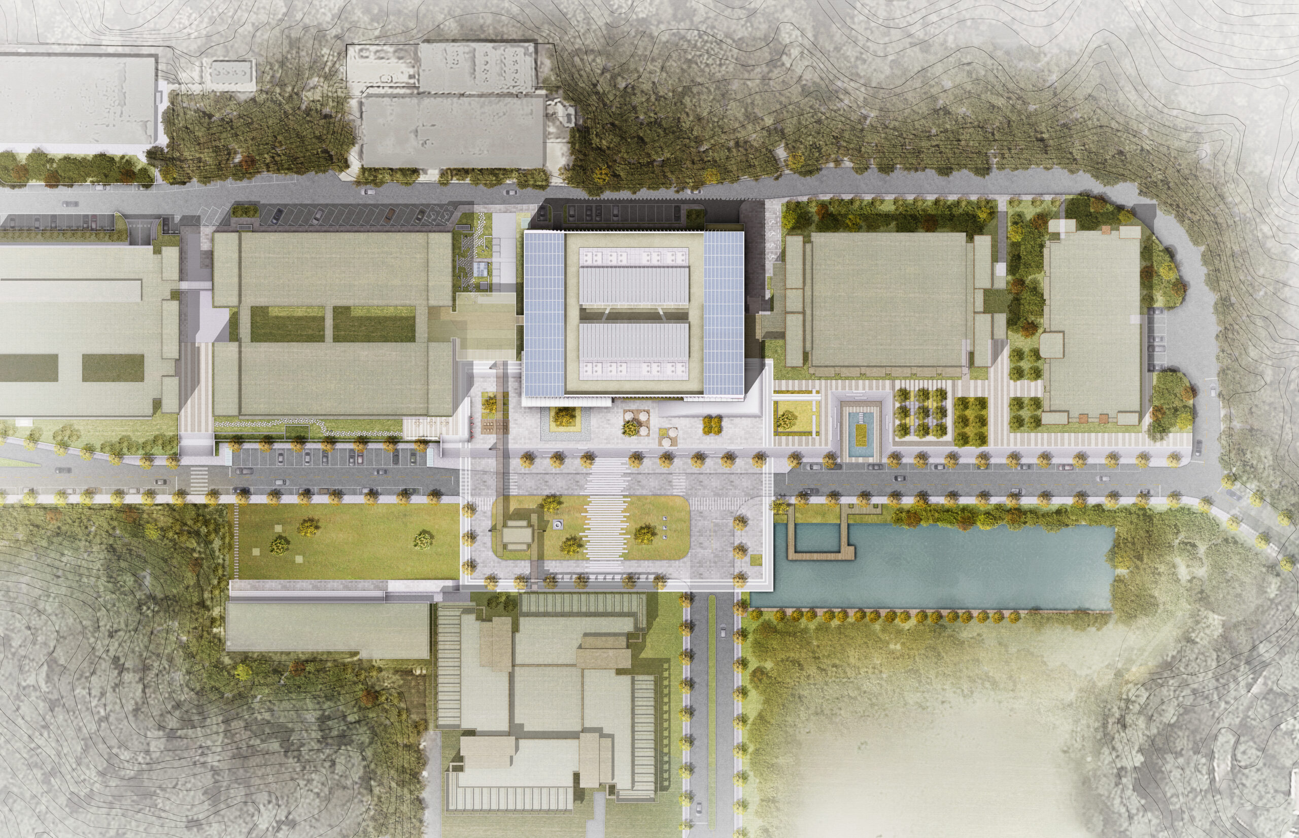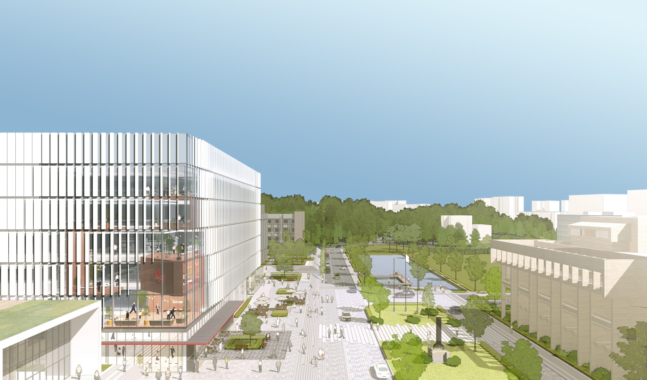 융합과 확장의 배치: 외부공간의 성격을 규정짓고 연계하여 다양한 연구자들의 융합이 가능하도록 계획