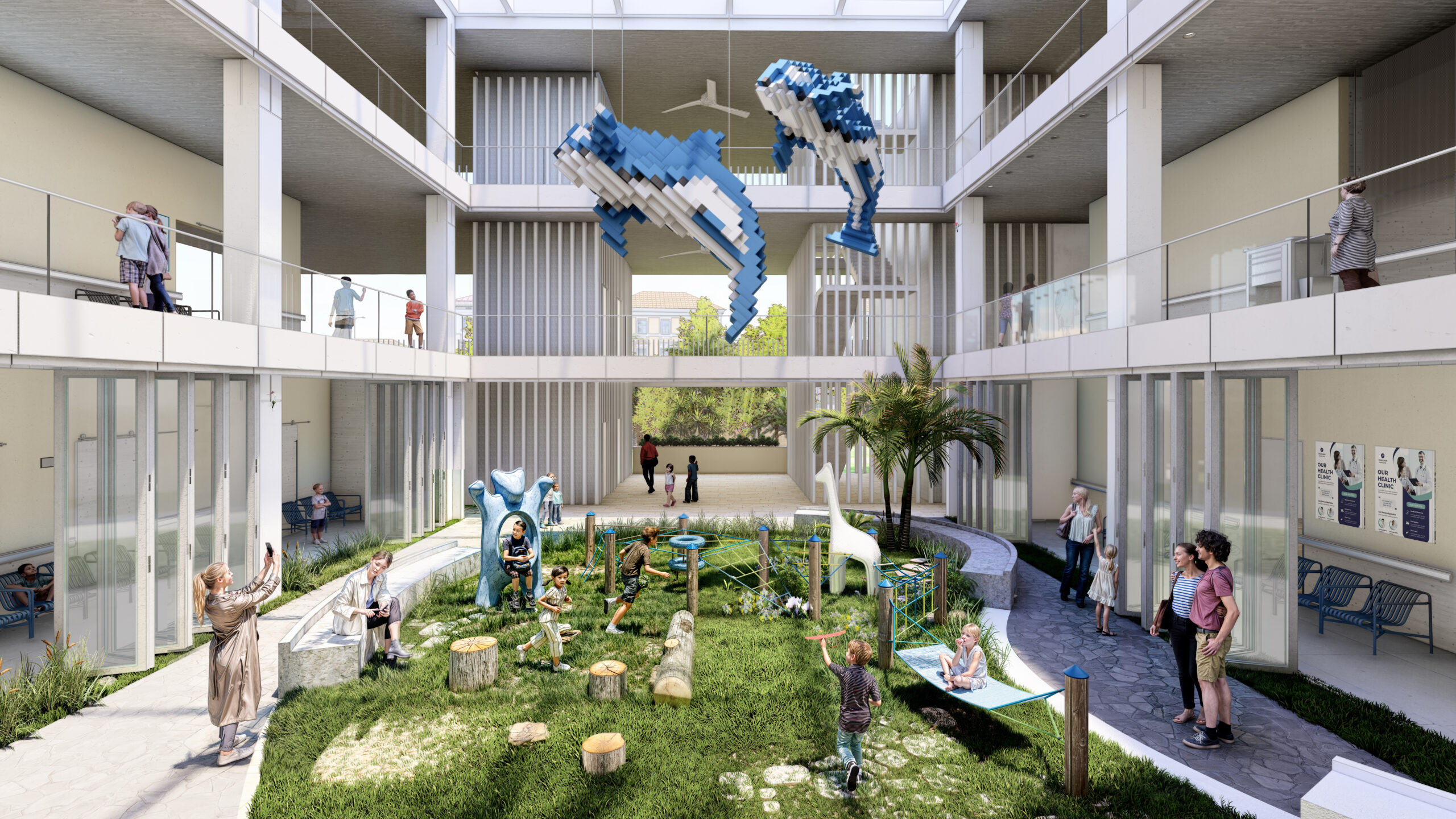 Microclimate Garden: A central courtyard-centered atmospheric space allows for natural ventilation in public spaces. It is a nature-friendly recreational space for pediatric patients and a healing garden that calms the mind and body of visitors.