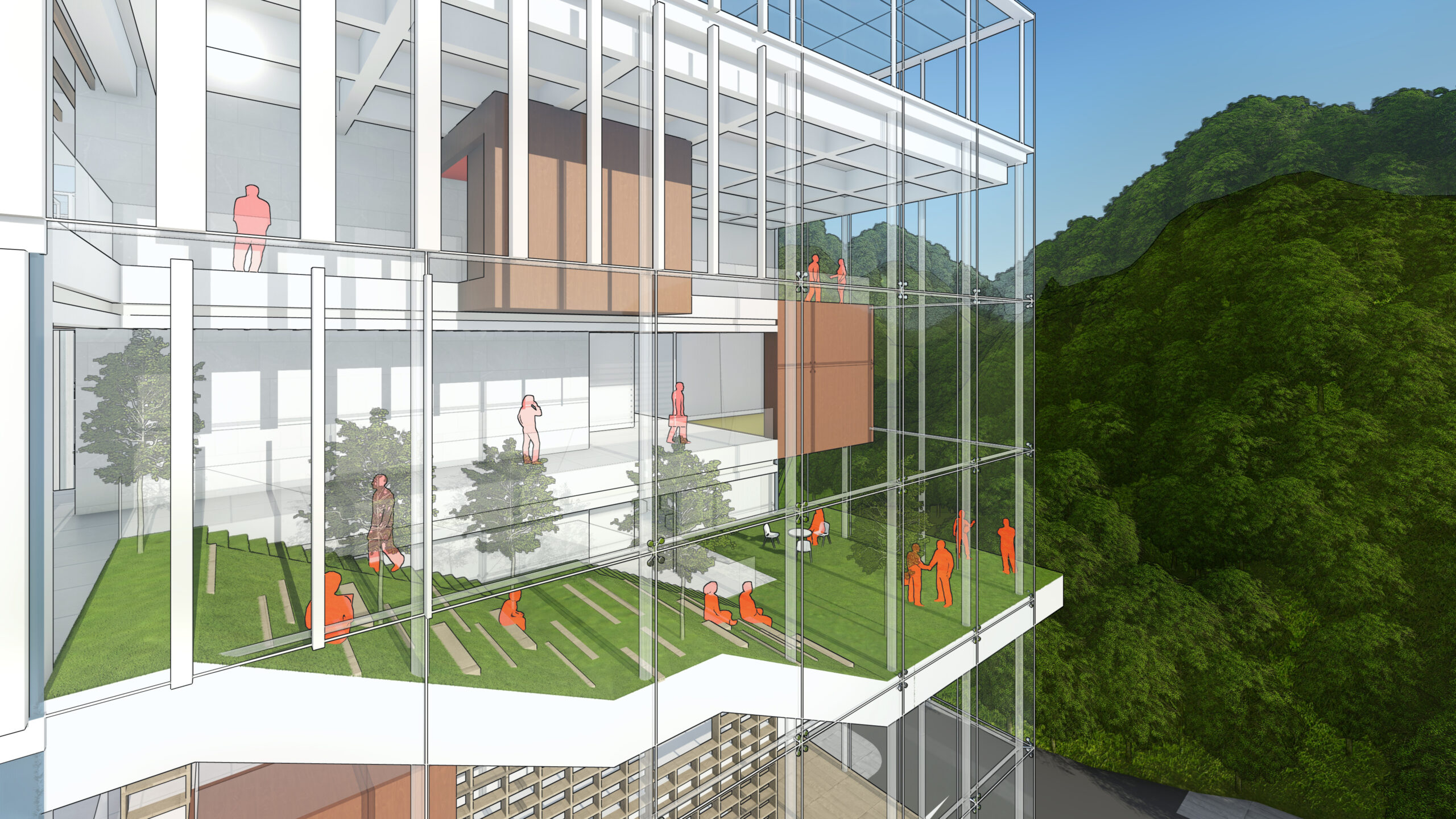 보타닉 홀: 잔디광장의 수평적 자연과 천장산의 수직적 자연을 조화시킨 비일상적 휴식의 공간